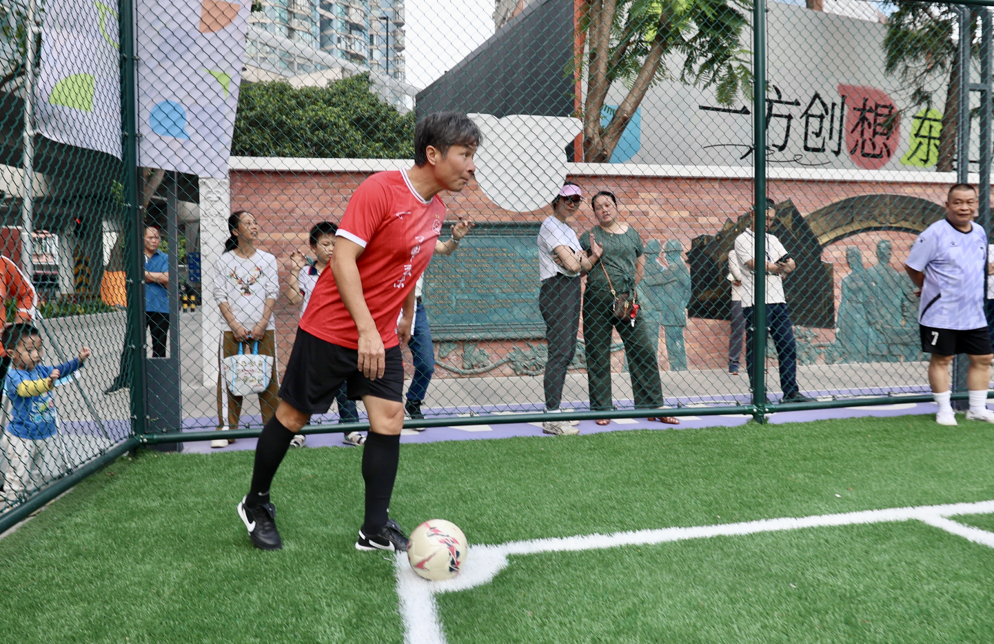 活动现场,彭伟国向众人分享他和足球的故事,以及与越秀区割舍不断的情缘,他还分享了自己眼中广州“平民球场”独有的烟火气与一代代足球人的传承精神。“这里以前是7人足球场,小时候我们就在这里踢球,现在又可以回到这里,和老朋友一起,觉得非常开心。”彭伟国说。